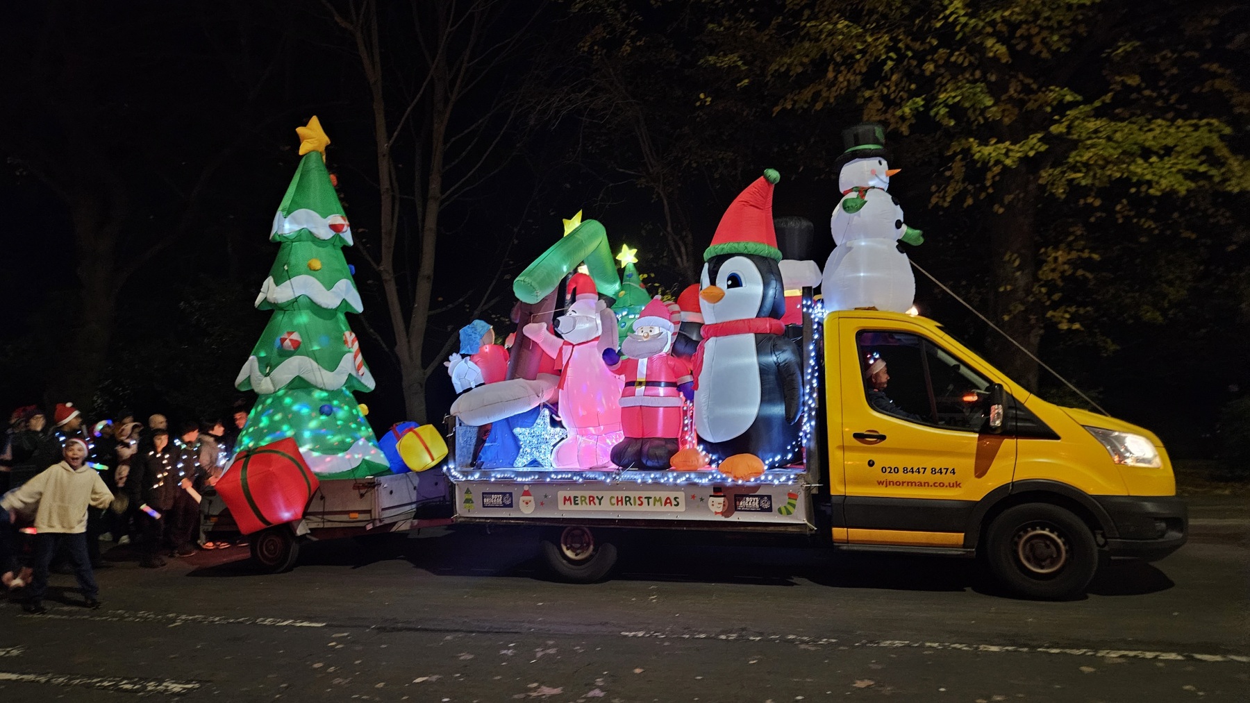 Enfield Battalion’s “Christmas Winter Wonderland” float included lots of Christmas-themed inflatables and festive music, and the group of children, young people and leaders made their way around with lights, glow sticks and more to make for a very bright and colourful display!