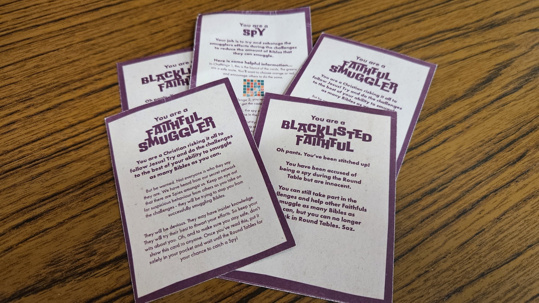 The group took on three challenges, with the Faithfuls trying to safely deliver as many Bibles as possible to an underground church network, whilst trying to identify the Spies within who were trying to sabotage their efforts!